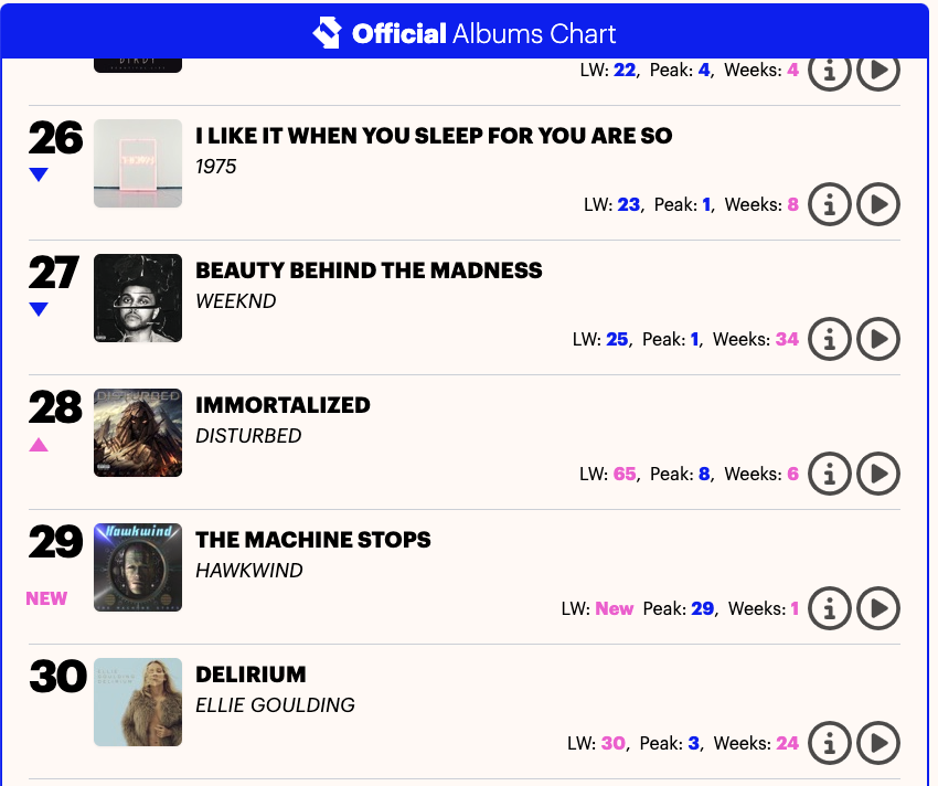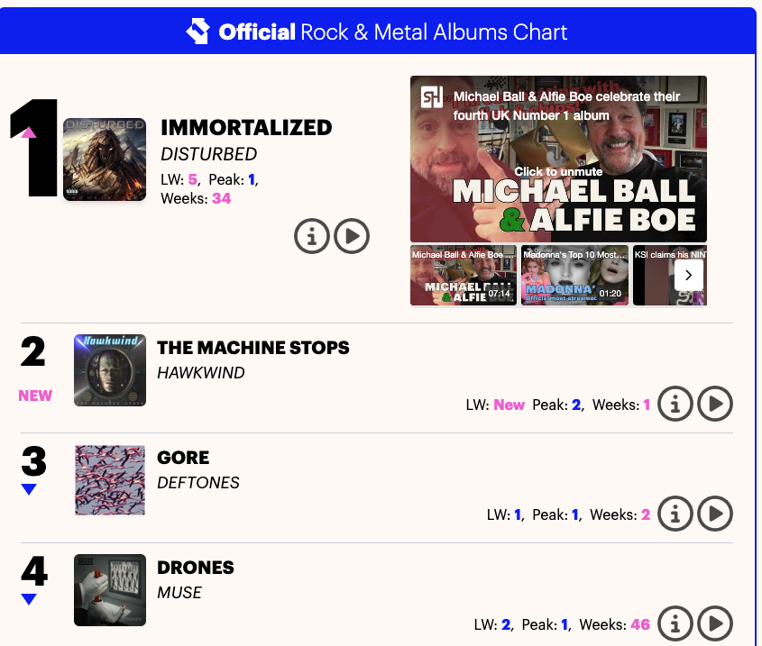 BBCのROCK ALBUM チャートでは堂々の2位!