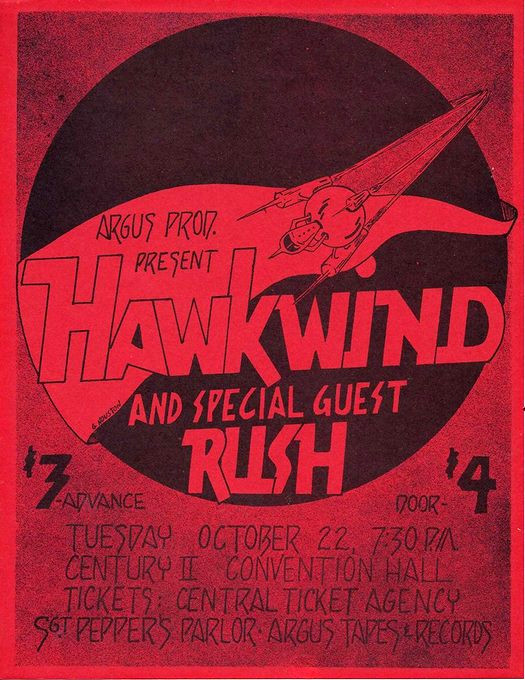 なおこのツアーにはラッシュ(RUSH)が5日間ゲストで出演しています。同ツアーでは他にUFOやカンサスなどもゲスト出演していましたが、ラッシュがもっとも数多く出演しました。プロデビューしたラッシュの初アメリカツアーという位置づけですね。ドラマーがニール・パートに代わった直後で、ホークスのSF志向が多少なりともラッシュに影響を与えたかもしれない、、と妄想してしまいます。実際は分かりませんが。