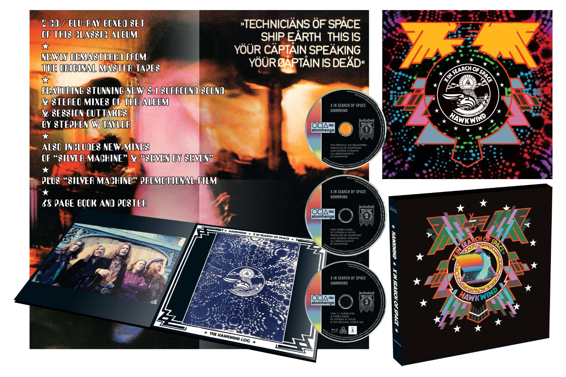 英CHERR RED傘下のレーベルATOMHENGEは2008年から15年に渡ってホークスのバックカタログや発掘音源のリリースを行なってきました。昨年「宇宙の祭典」の50周年記念セットのリリースを行いましたが、その際にリミックス、サラウンド化を担当したのがステファン・W・テイラーでした。今回のリミックスも同様に彼が担当しました。CD1には、オリジナルミックスのリマスター、CD2はテイラーによる新2chミックス。ブルーレイにはテイラーによる5.1chサラウンドミックスが収録されるとのこと。いずれのディスクにもボーナストラックとして、Hog Farm、Kiss Of The Velvet Whip、Seven By Seven、Silver Machineが収録。セッションテイクであるHog FarmとKIss Ofは以前UA期のコンピレーション盤『PARALLEL UNIVERSE』に収録されていたもの。このリミックス・ワーク、ひょっとしたら『ドレミ』も行われるかもしれませんね。