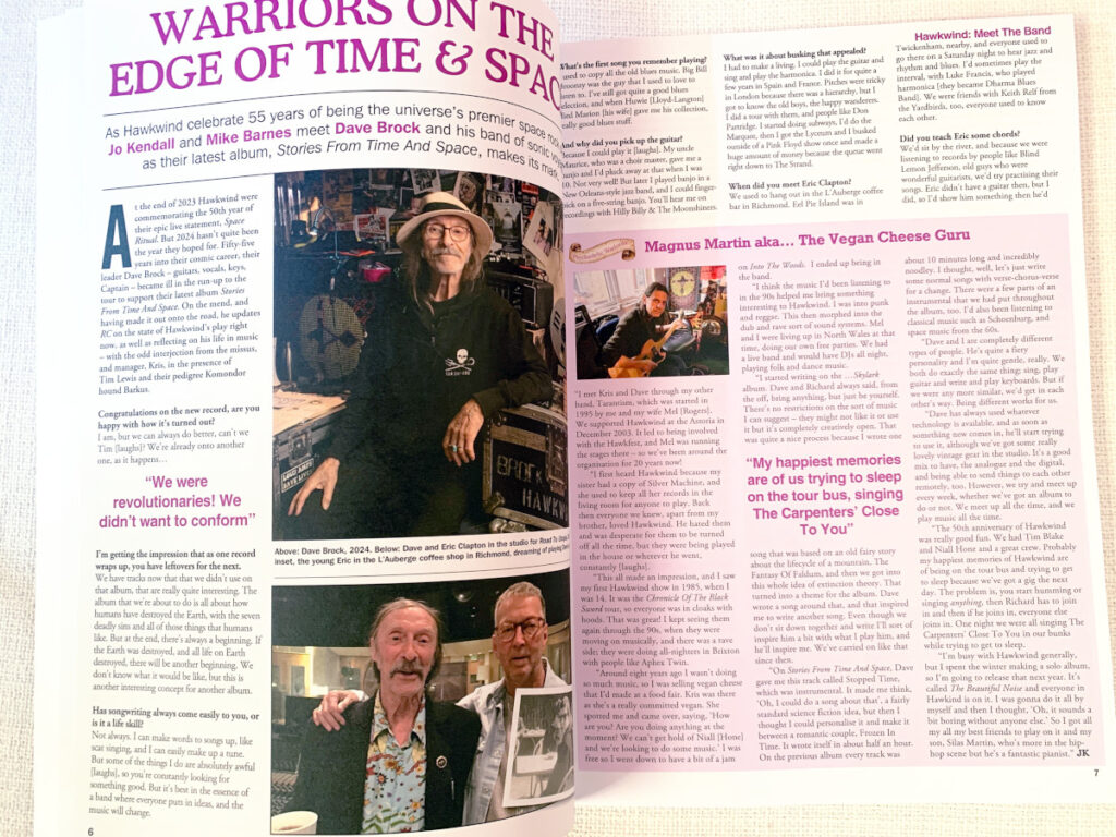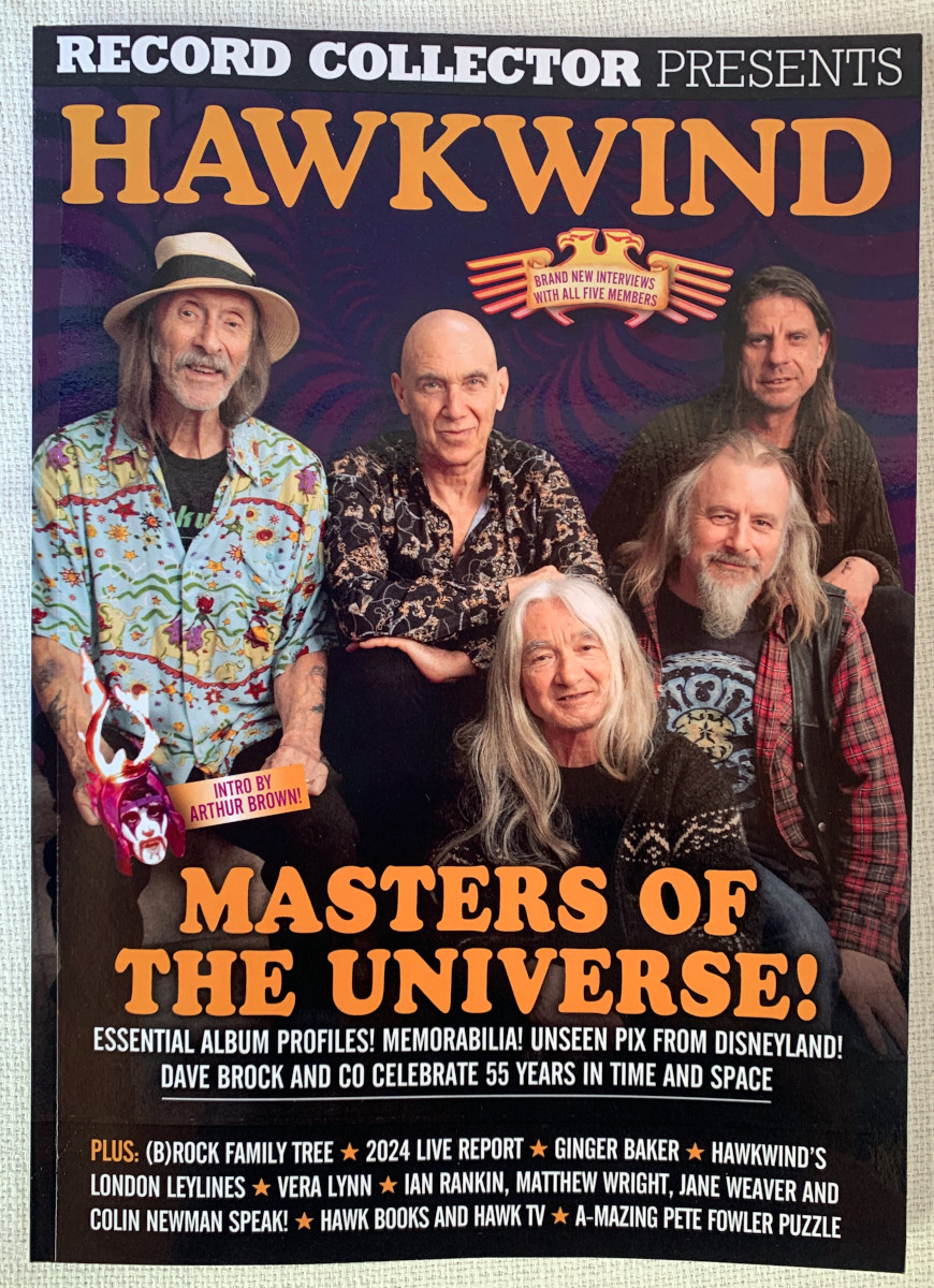 本年6月に英RECORD COLLECTORから発売されたホークウィンド特集本。AmazonUKから購入しました。さすがレココレ誌、とても充実した内容でファンには強くお勧めします。主要アルバムのレビューは当然、現メンバー全員へのインタビュー、加入経緯など詳しく語られています。特にキーボードのティム・ルイスのホークスへの思いやベースのダグ・マッキノンもやっぱり長年のホークスファンだったことなど、今のホークスを知る手がかかりになります。その他多数の関係者へのインタビューや紹介、ムアコック、マシュー・ライト、ヒューの奥さんマリオン・ラントン、クリス・テイト、フィル・スミー(ホークスのCDパッケージデザイン)のバーニー・バブルズ解説、ブライアン・タウンなど関連のキーマンはほぼ顔を揃えています。99年のRemix Projectに参加したコリン・ニューマンとかも押さえられていたり、コレクターの紹介とかもあり、本国での人気の高さを裏付ける充実した内容です。