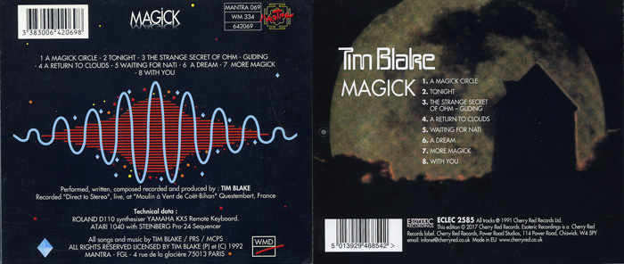 英ESOTERIC RECORDINGSレーベルによる、ティム・ブレイクのソロアルバム群再発の第3弾として、91年の3rdアルバムMAGICKがリリースされています。このアルバムは91年に英VOICEPRINTからリリース、92年に仏Mantraから再発され、その際に素っ気なかったカバーが新調されました。その後、2000年に同じく英VPより再発されています。