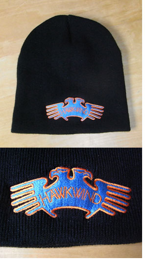 こちらはビーニーと呼ばれるニット帽です。冬場やちょっと肌寒い時なんかにかぶるもの。オレンジの縁取りと青のコントラストが結構派手めです。