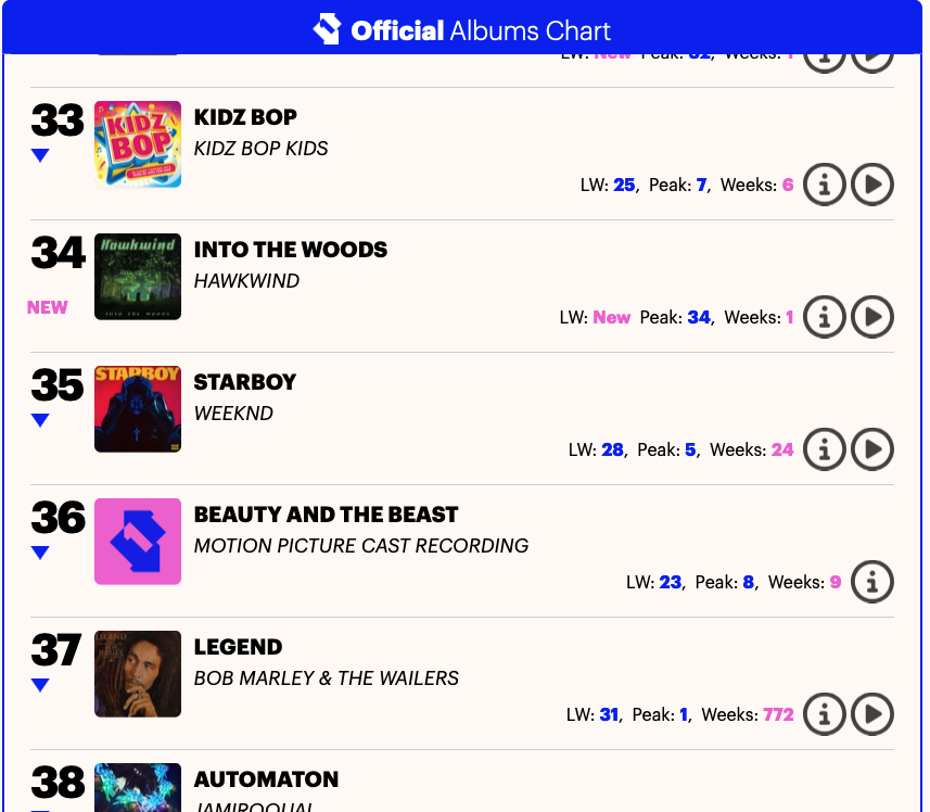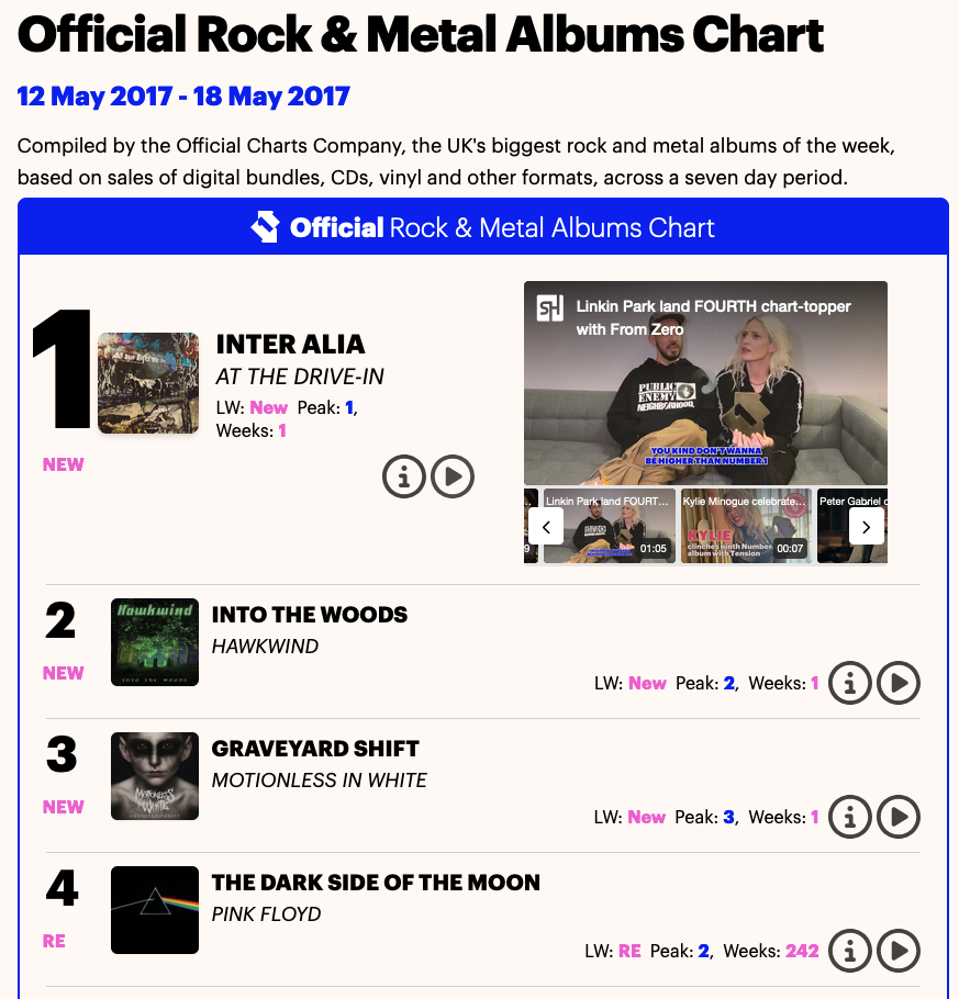 今週の全英Official Chartsが発表されました。