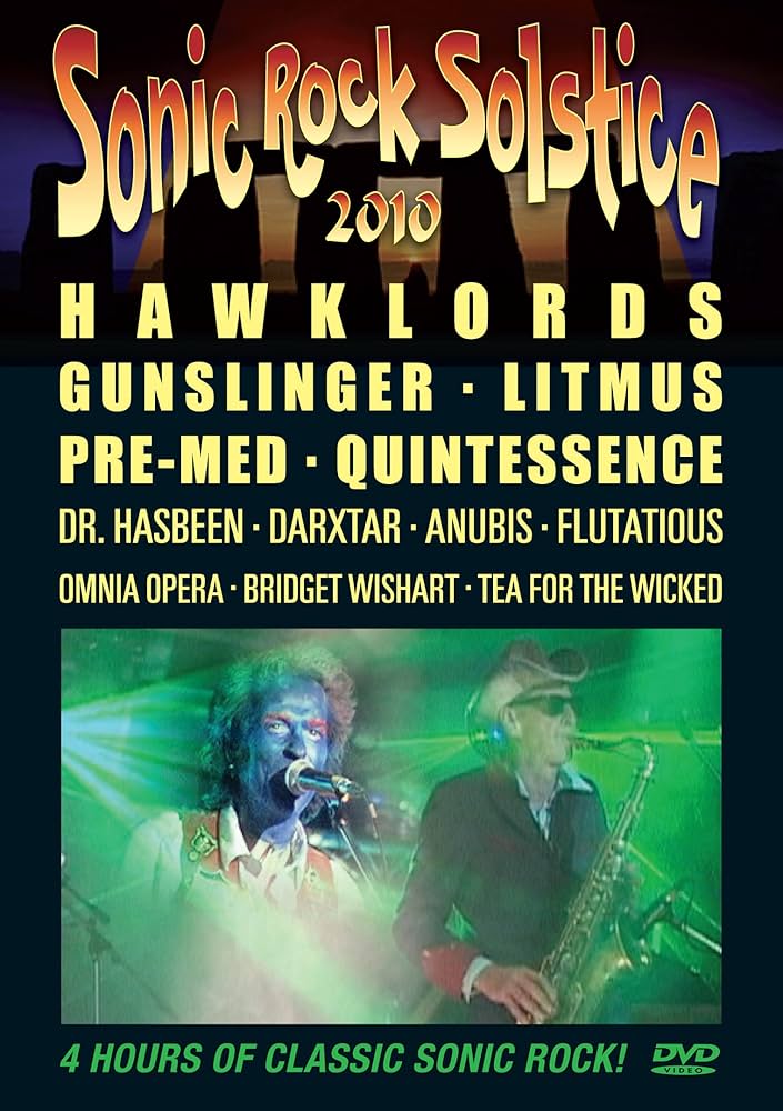メインは再編 HAWKLORDS のステージ、先日も2009年のギグを収めたDVDを紹介しましたが、メンバーは同じで、ニック、H.ベインブリッジ、S.スインデルス、A.デイヴィ、R.トゥリー、J.リチャーズという面々。他にA.デイヴィのガンスリンガー、同じくホークスに在籍していた女性ボーカリスト B.ウィシャート、その他ホークスフォロワー勢のステージの様子が収録されています。