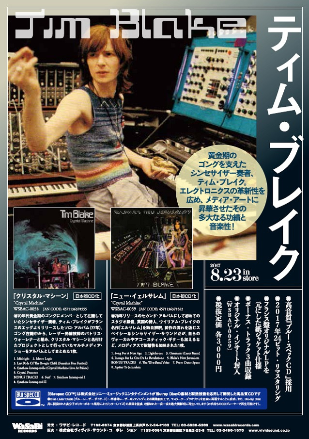 なお今回のブレイク作品リマスター群の初期の2作品「クリスタル・マシーン」「ニュー・イェルサレム」がワサビレコードより8/23国内盤リリースされます。紙ジャケ、BlueSpecCD、2枚同時購入で特製8cmCD「永遠の合成」が特典。<8/27update 発売は9/6に延期されました) 詳細はこちらhttps://www.airmailrecordings.com/wasabi/wsbac058_9.html